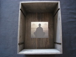 2005Zwart geverfde wijnkist met foto van mediterende zen monnik